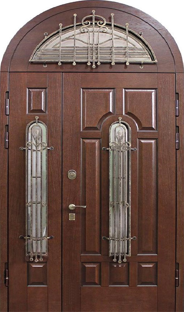 Арочные конструкции всегда придают входу выразительность и особый статус, а если добавить две створки и стеклянные вставки, дверь превращается в центральный элемент фасада. Натуральное дерево в отделке подчеркивает солидность и гармонично сочетается с металлом, из которого выполнено основание: каркас и полотно из профильных труб и стальной лист толщиной 2 мм обеспечивают прочность и долговечность. Для удобства и безопасности используются два замка разного типа — сувальдный и цилиндровый, оба с тремя ригелями, что делает взлом крайне затруднительным. Двухстворчатая арочная дверь со стеклом в частный дом №14 может изготавливаться любого размера и адаптироваться под архитектуру конкретного здания. Возможна установка дополнительных элементов: зеркало, стеклопакет, кованые детали или даже видеодомофон. Резиновое уплотнение по двум контурам защищает от сквозняков, а возможность выбора отделки и фурнитуры открывает простор для индивидуального дизайна. Двухстворчатая арочная дверь со стеклом в частный дом №14 от производителя: быстрое изготовление и монтаж в Старой Купавне, индивидуальные размеры, широкий выбор материалов и фурнитуры, официальная гарантия до 10 лет.