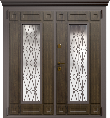 Дверь входная двухстворчатая с витражным стеклом №47