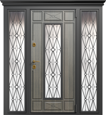 Входная дверь с кованой ручкой и фрамугой №6